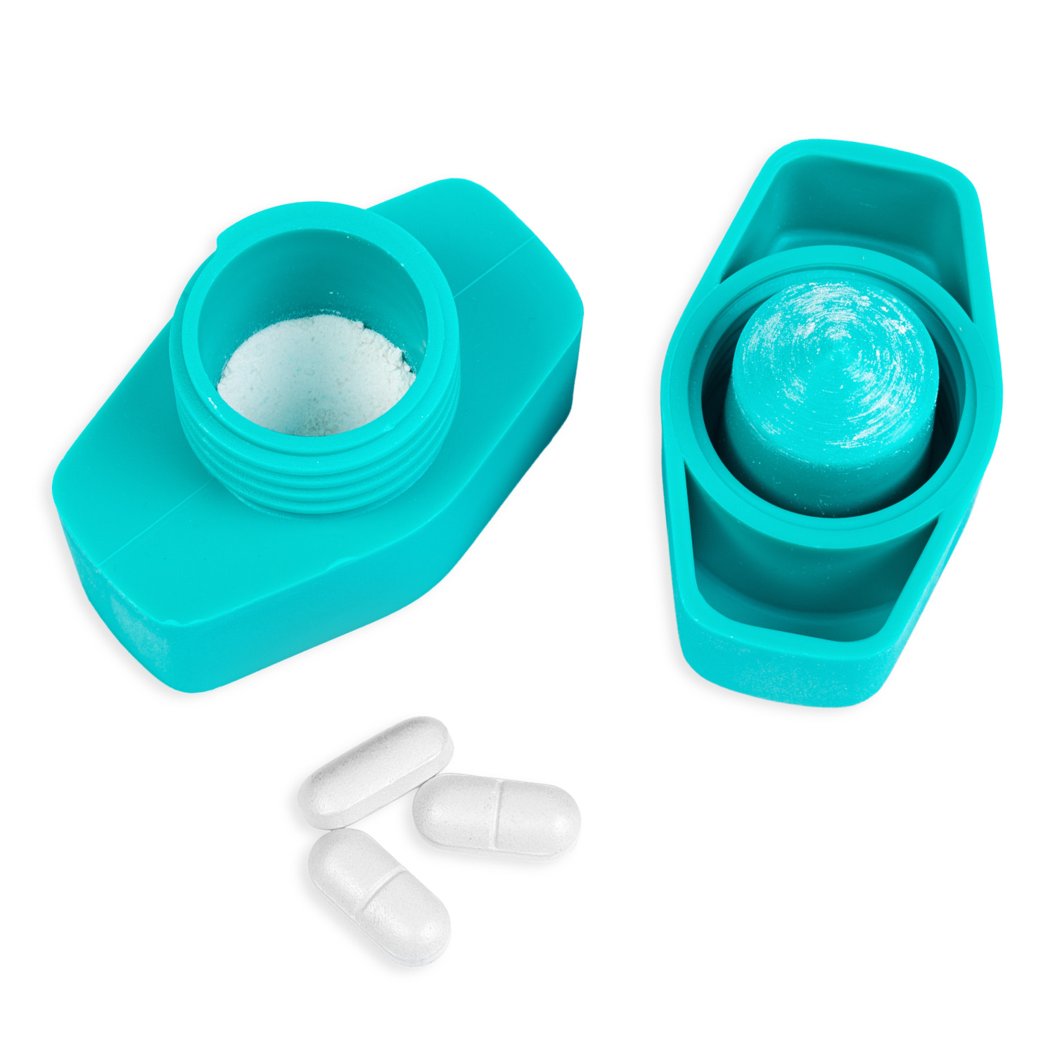 - Kruszarka do tabletek CrushTIM ma pojemnik w górnej części, w którym można przechowywać tabletkę.