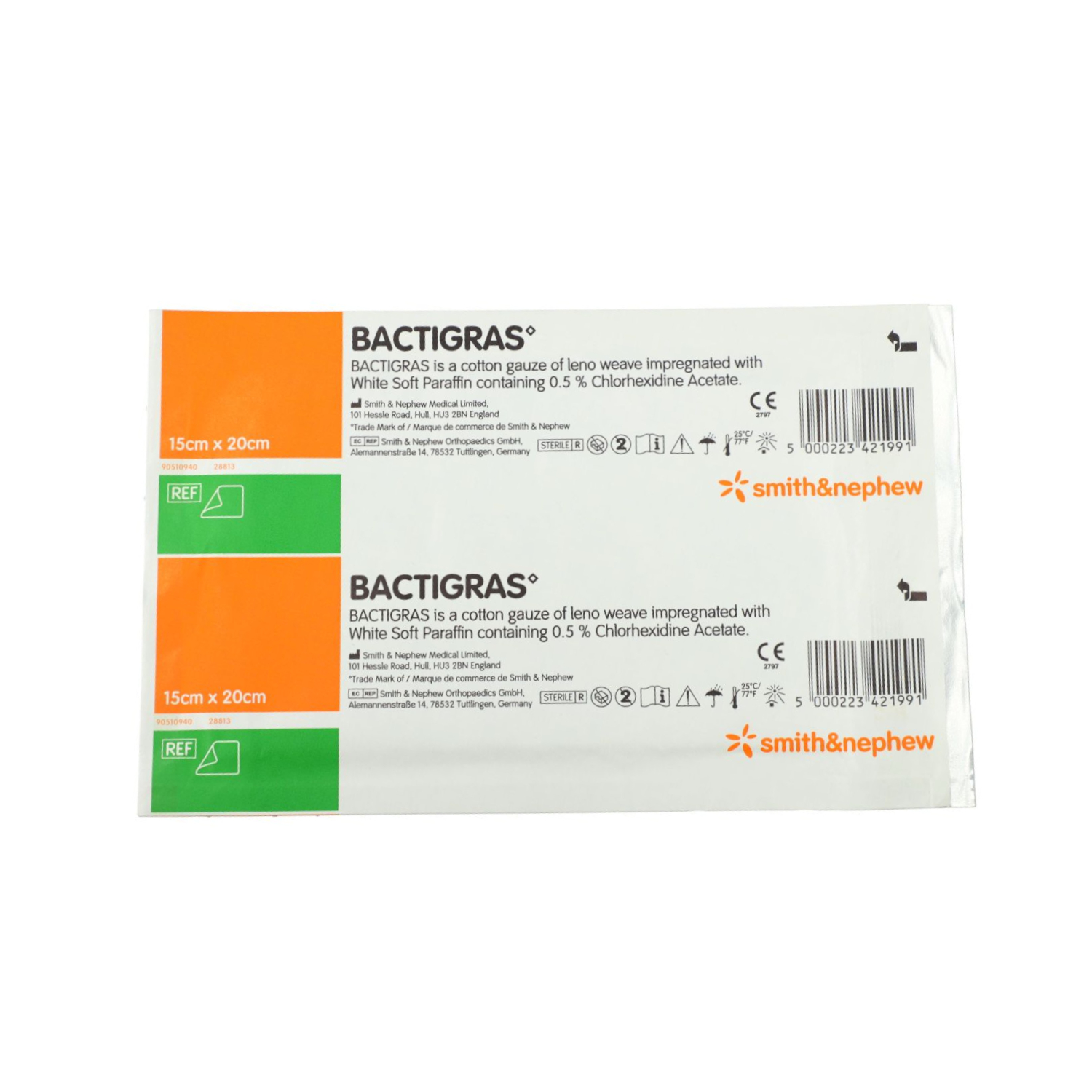 Bactigras jest opatrunkiem wykonanym z gazy, tkanej splotem leno, zaimpregnowanej miękką, białą parafiną zawierającą 0,5% roztwór octanu chlorheksydyny. Bactigras ma udowodnione właściwości antyseptyczne i redukuje ryzyko kolonizacji rany przez bakterie, a także działa bakteriobójczo na już zainfekowanych ranach.