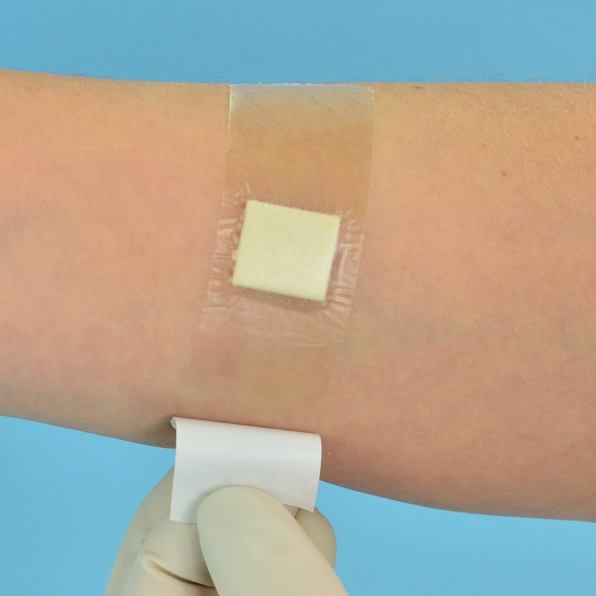 - Centralnie umieszczony wkład chłonny pod wpływem krwi zwiększa swoją objętość i uciska na ranę.