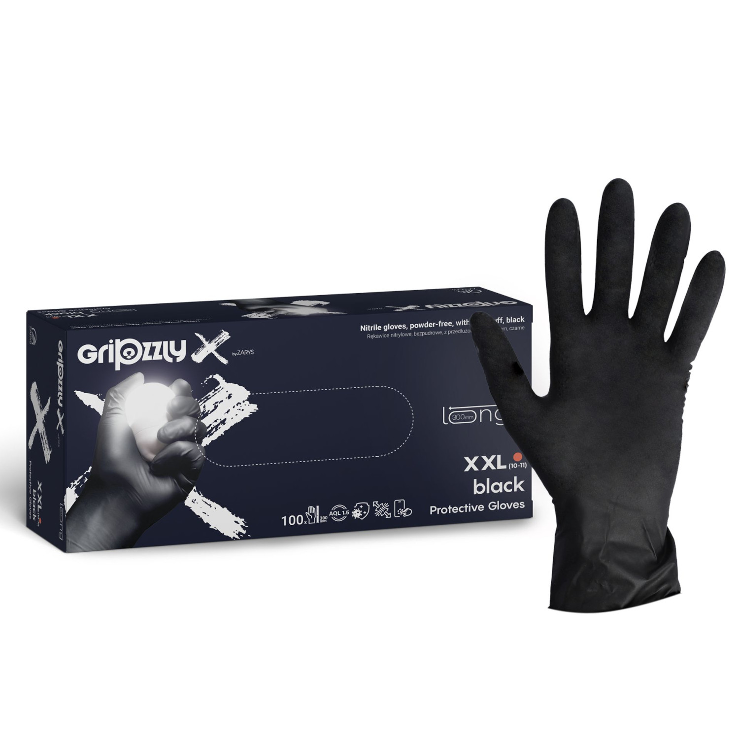 - Rękawice Gripzzly X są wykonane z bardzo mocnego nitrylu o podwyższonej wytrzymałości na rozrywanie.
