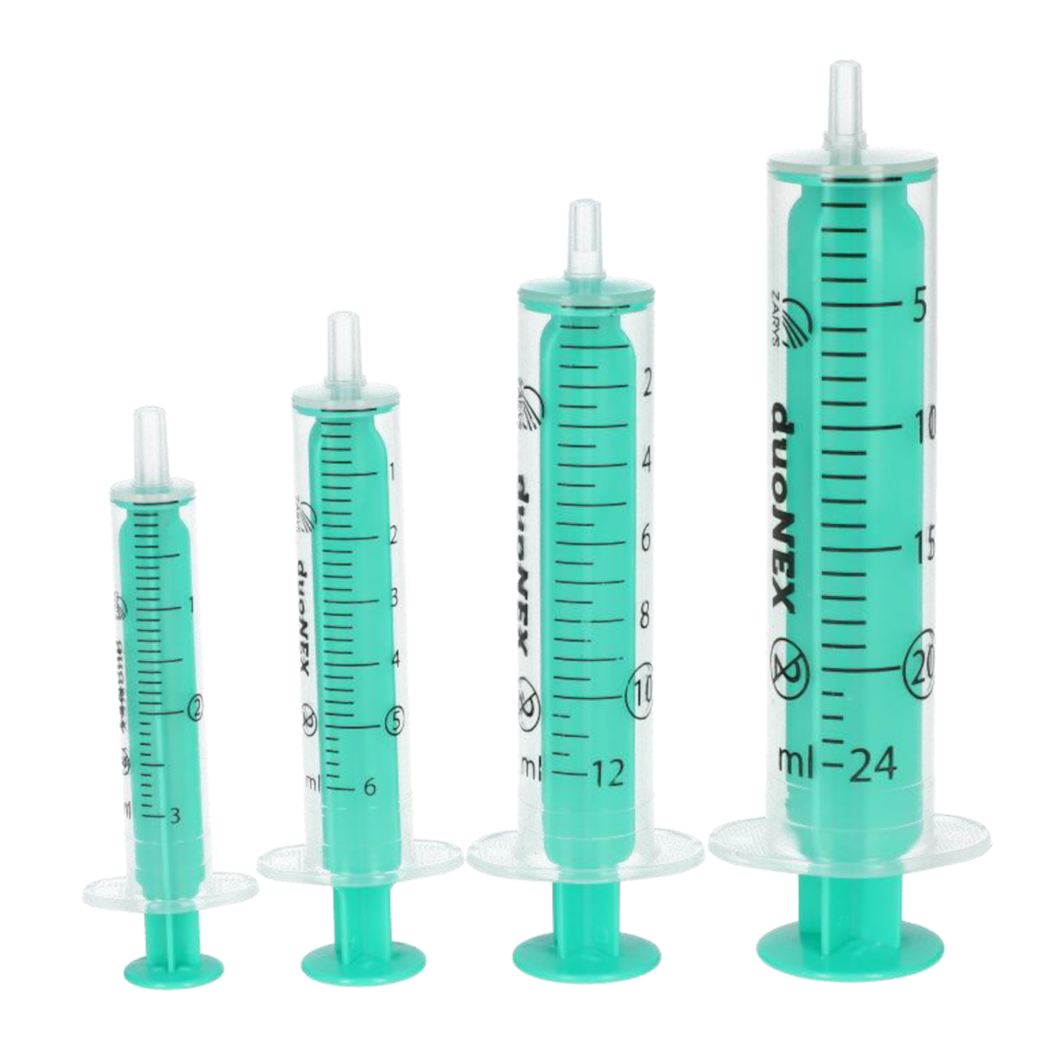 Strzykawki duoNEX dwuczęściowe z zielonym tłokiem