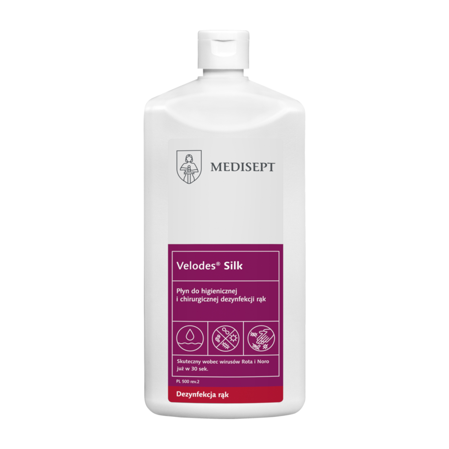 - Velodes Silk jest preparatem na bazie alkoholu. Służy do higienicznej i chirurgicznej dezynfekcji rąk. Charakteryzuje się szerokim, potwierdzonym badaniami spektrum bakteriobójczym, bójczym wobec gruźlicy, drożdzakobójczym. Jest też skuteczny wobec wirusów osłonkowych i nieosłonkowych, takich jak HIV, HBV, HVC, Rota wirus. Może być stosowany we wszystkich placówkach służby zdrowia, sektorze żywnościowym, w warunkach przemysłowych i domowych oraz w zakładach użyteczności publicznej, a także do dezynfekcji powierzchni mających i niemających kontaktu z żywnością – jako produkt biobójczy. Velodes Silk działa bardzo szybko, a po przeprowadzeniu chirurgicznej dezynfekcji rąk ma także działanie przedłużone do 3 godzin.