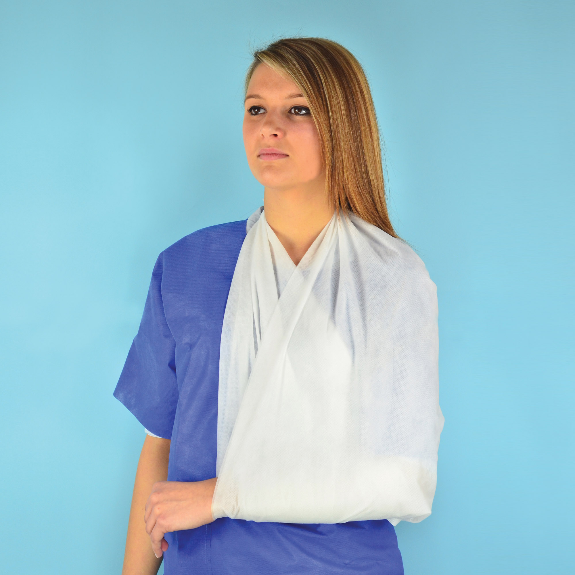 - Chusta trójkątna elastoSLING służy do krótkotrwałego unieruchomienia ręki i obręczy barkowej w przypadku różnych urazów, np. zwichnięcia lub złamania obojczyka, kości ramieniowej, kości przedramienia lub dłoni.