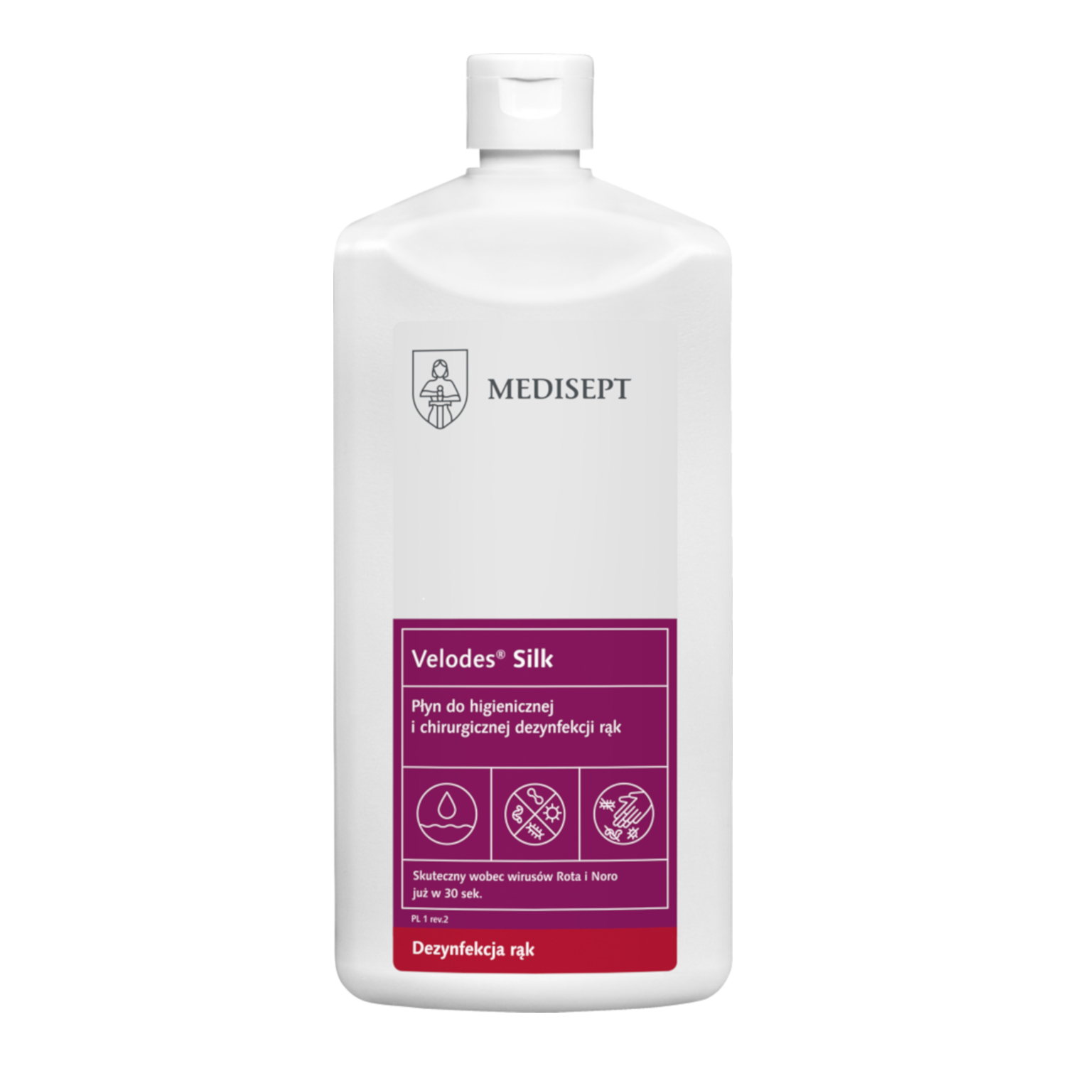 - Velodes Silk jest preparatem na bazie alkoholu. Służy do higienicznej i chirurgicznej dezynfekcji rąk. Charakteryzuje się szerokim, potwierdzonym badaniami spektrum bakteriobójczym, bójczym wobec gruźlicy, drożdzakobójczym. Jest też skuteczny wobec wirusów osłonkowych i nieosłonkowych, takich jak HIV, HBV, HVC, Rota wirus. Może być stosowany we wszystkich placówkach służby zdrowia, sektorze żywnościowym, w warunkach przemysłowych i domowych oraz w zakładach użyteczności publicznej, a także do dezynfekcji powierzchni mających i niemających kontaktu z żywnością – jako produkt biobójczy. Velodes Silk działa bardzo szybko, a po przeprowadzeniu chirurgicznej dezynfekcji rąk ma także działanie przedłużone do 3 godzin.