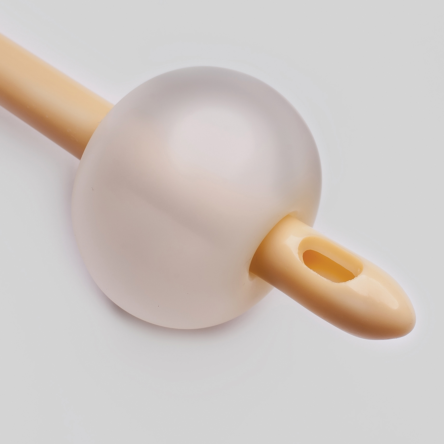 - Lekko zaokrąglona końcówka i silikonowana powierzchnia ułatwiają wprowadzenie cewnika.