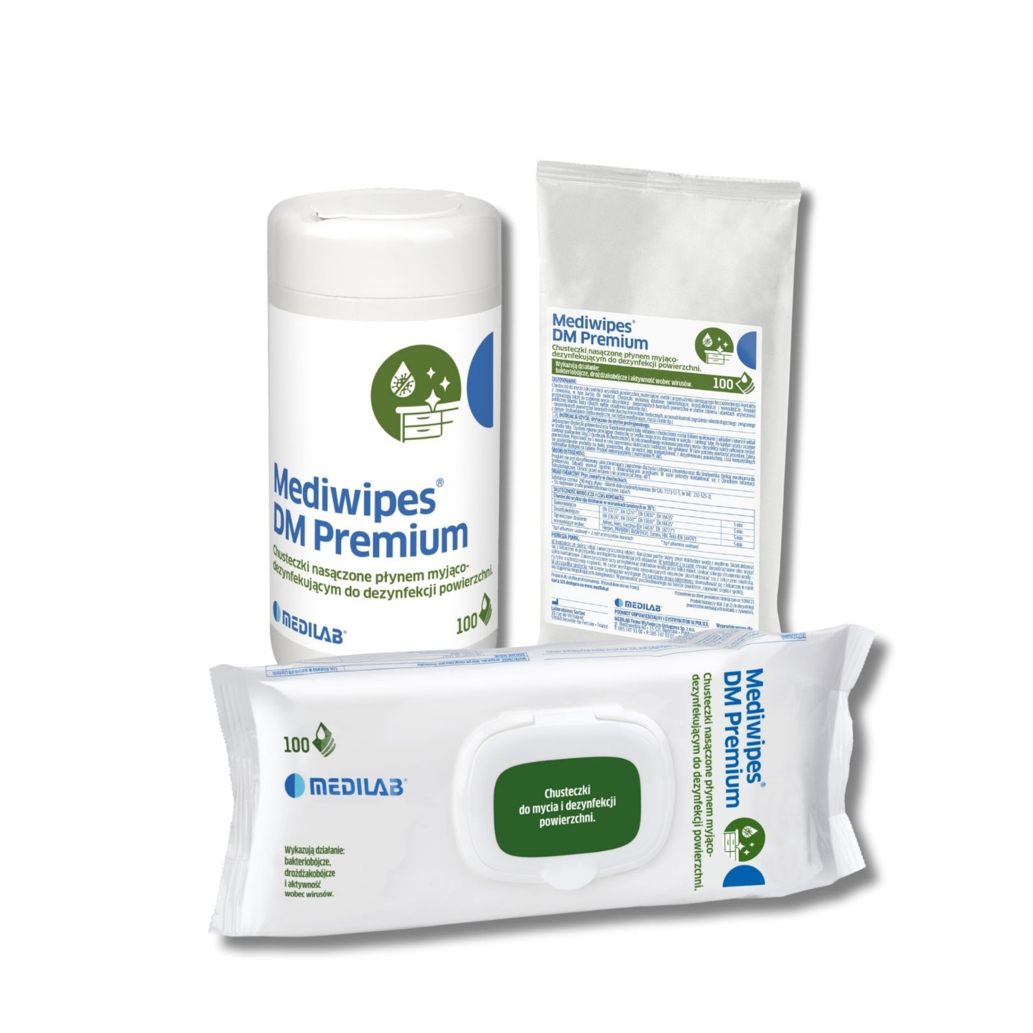 - Mediwipes DM premium to gotowe do użycia chusteczki, które jednocześnie myją i dezynfekują małe powierzchnie, wyroby medyczne i różnego rodzaju wyposażenie, wrażliwe na działanie preparatów alkoholowych.