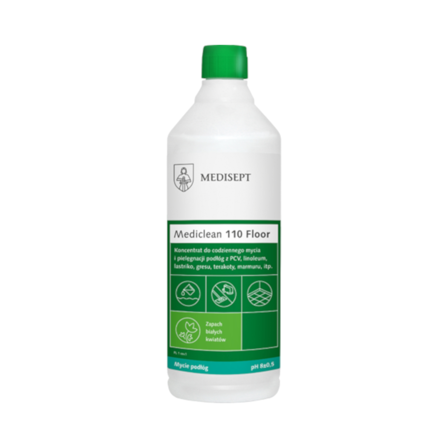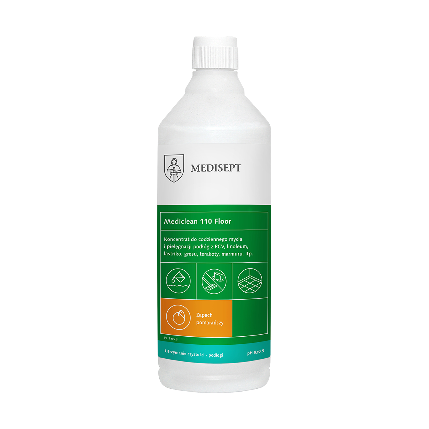 - Mediclean 110 Floor Clean jest preparatem opartym na detergentach niskopieniących do mycia i konserwacji podłóg, zalecanym do codziennego utrzymania czystości i pielęgnacji wszelkich wodoodpornych podłóg, z wyjątkiem wykładzin dywanowych i podłóg z surowego drewna.